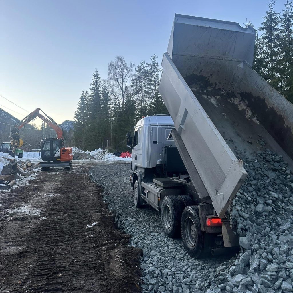 Kåsastul Maskin As transporterer stein, pukk, grus og jordmasser til kunder i hele kommunen og omegn.